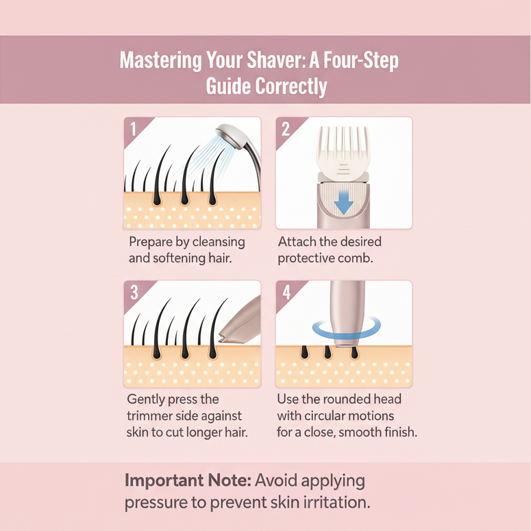Trim, shape, or fully smooth in total comfort — no nicks, no razor burn, no redness. Designed to be safe, painless, and easy to control right from home.